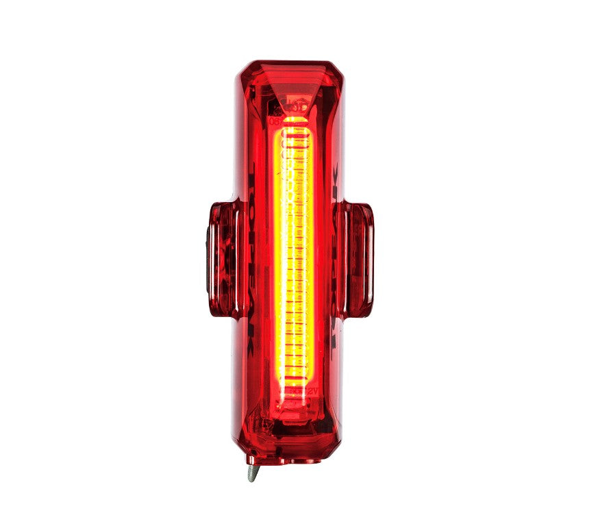 Meget praktisk, kraftig og aerodynamisk baklys som monteres meget enkelt uten verktøy på alle type sadelpinner eller Topeak-vesker.